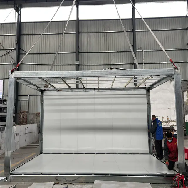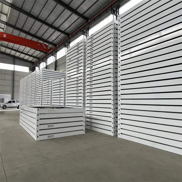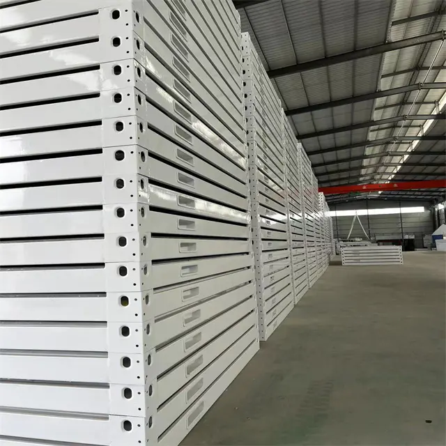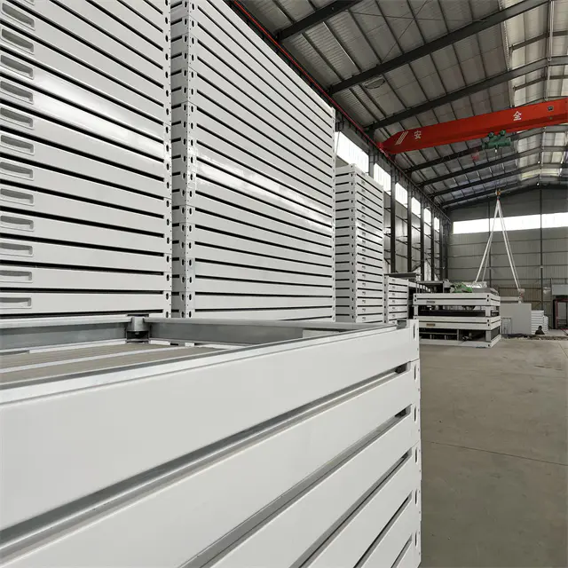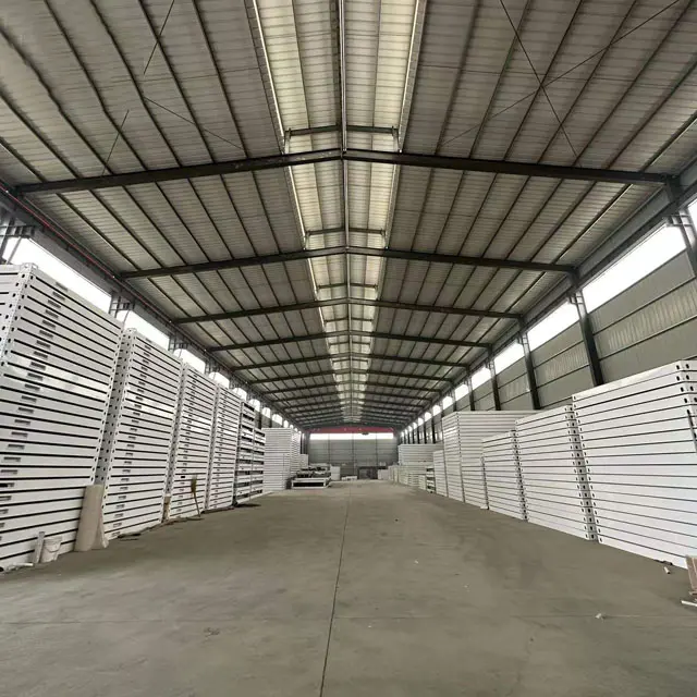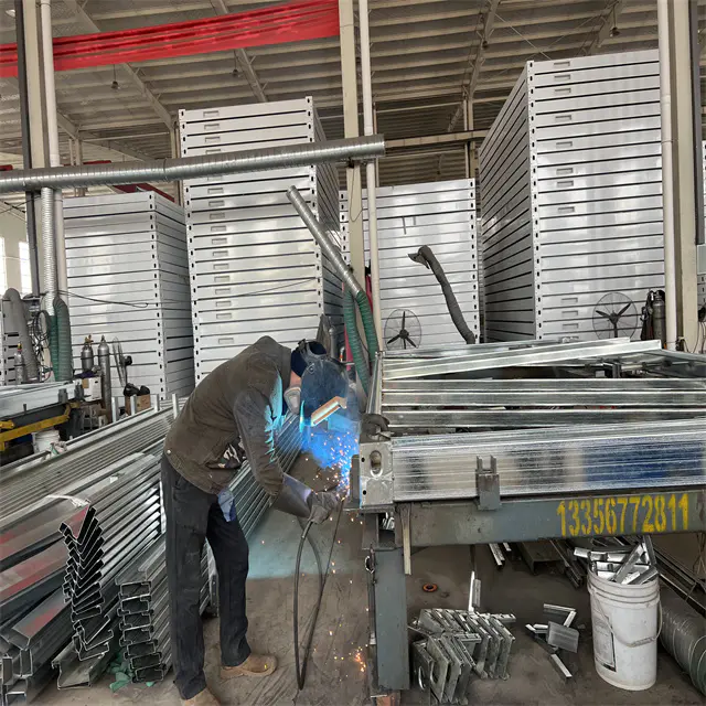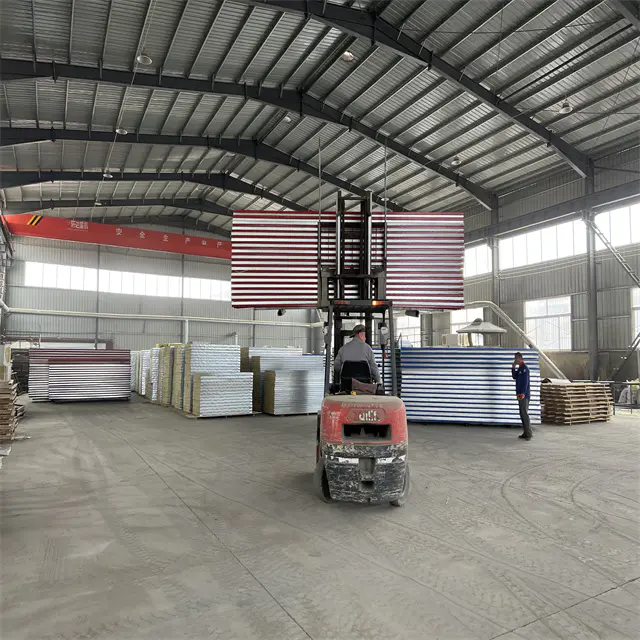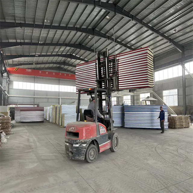 Meil on oma 2 tehast, kokku üle 20 000 m² tehas, meil on 6 teraslehe pressimismasinat, 6 keevitusliini, 2 küpsetusvärvi ruumi ja 1 sandwich-paneelide seinte tootmisliin, need ülaltoodud on kogu paneelmaja tootmisliin, siis saame tagada, et kogu meie tehase maja kvaliteet on kvalifitseeritud.